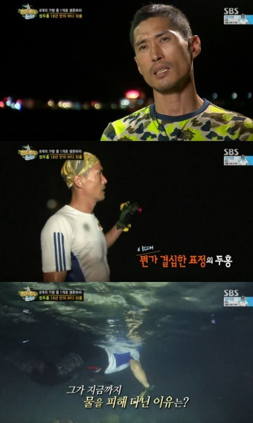 이에 제작진은 "얼마만의 수영이냐"라고 묻자, 정두홍은 "한 17~18년 만에 바다 수영을 하는 것 같다"고 답했다.