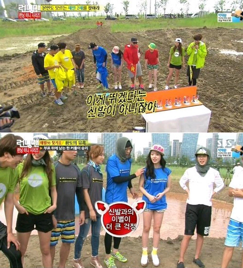 그러나 두 사람은 황토물에서 게임을 치르게 되자 어쩔 수 없이 장화로 신발을 갈아 신었고, 이유리는 장화를 신고 까치발을 서며 걸어 웃음을 안겼다.
