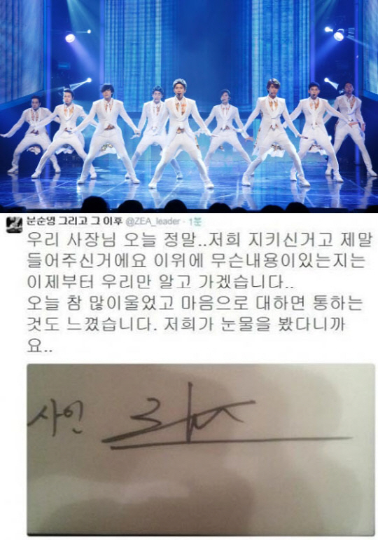 앞서 문준영은 21일 자신의 트위터에 소속사 스타제국 신주학 대표를 신랄하게 비판하는 글을 여러 차례 게재해 논란이 됐다. 문준영은 "제가 정말 믿고 사랑했던 스타제국 신주학 사장님. 떳떳하십니까. 9명의 아들들 코 묻혀가며 피 묻혀가며 일해온 수익들 자금들 피 같은 돈들. 다 어디로 사라진 걸까요?"라며 소속사와의 계약기간 및 수익 배분에 대한 문제, 컴백을 일주일 앞두고 체력 소비가 심한 프로그램 출연 강행으로 인한 다리 부상 등을 폭로, 소속사에 대한 불만과 연예계에 비판적인 의견을 내놨다. 뿐만 아니라 소속사의 불합리한 처우로 인해 원형탈모증과 우울증을 겪고, 심지어 자살 시도까지 감행했었다고 밝혀 충격을 안겼다.