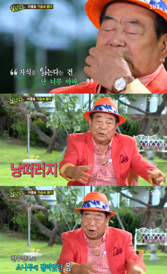 이후 송해는 "소나무가 몇 개 있었는데 내가 소나무에 얹혔다. 달려온 사람들이 부축하고 그래서 그 순간을 면했는데 얼마나 창피했는지 그때 사람들에게 앞에서 미안하다고 무릎 꿇고 용서를 구했다"며 아들 죽음 이후 괴로웠던 날들을 솔직하게 털어놨다.