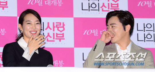 24일 오후 서울 성동구 행당동 CGV왕십리에서 영화 '나의 사랑 나의 신부' 언론시사회가 열렸다. 신민아가 조정석이 기자간담회를 갖고 있다. '나의 사랑 나의 신부'는 박중훈, 최진실이 주연을 맡았던 동명의 1990년 작품을 리메이크한 영화로 4년 간의 연애 끝에 결혼한 영민과 미영의 신혼생활을 그린 영화로 10월 8일 개봉한다. 김보라 기자 boradori@sportschosun.com/2014.09.24/