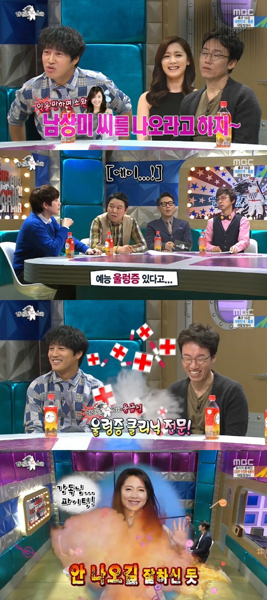 이날 MC 김구라는 "남상미씨는 왜 안 나온 거냐"라며 불만 섞인 말을 내뱉자, 차태현은 "남상미씨가 예능 울렁증이 있어 나오기 싫다고 하더라"고 솔직하게 털어놨다.