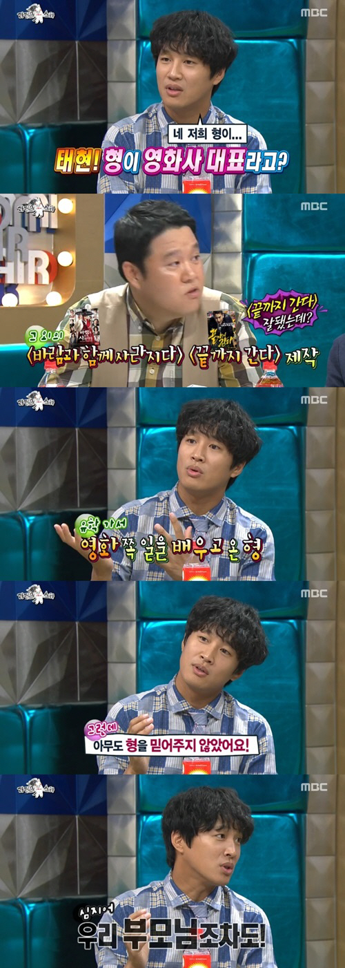 특히 차태현은 "근데 아무도 우리 형을 믿어주지 않았다. 부모님도 안 믿었다. 나만 믿었던 것 같다"며 "제작을 한다는 것 어쩌면 집을 다 말아먹는 일이 될 수도 있기 때문에 걱정을 하셨던 것 같다. 그래도 난 형이 원체 사회성이 많아서 잘하겠다는 생각을 했다"고 형에 대한 신뢰감을 드러냈다.