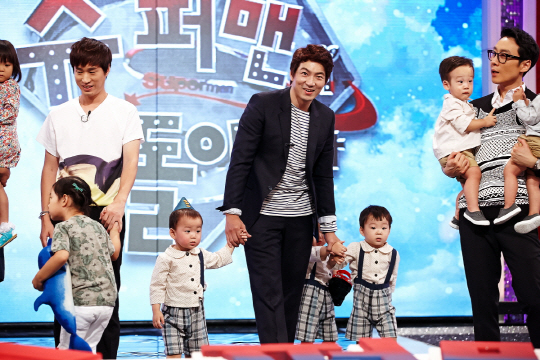 요즘 송일국네 삼둥이가 화제입니다. 어디로 튈지 모르는 천방지축 개구쟁이 삼형제 대한-민국-만세. 이름도 장군의 후손답죠? 송일국과 삼둥이는 얼마 전 2014 인천 아시안게임 성화봉송 주자로 나서기도 했습니다. 삼둥이를 업고 안고 뛰는 송일국을 진짜 슈퍼맨이 봤다면 아마 엄지손가락을 치켜들었을 겁니다. 송일국은 이렇게 말했습니다. "삼둥이 육아는 세 배로 힘들지만 기쁨은 세 제곱으로 크다." 아마도 서언-서준 쌍둥이 형제의 아빠 이휘재와 라율-라희 쌍둥이 자매의 엄마 슈도 공감하는 얘기겠지요. KBS2 '슈퍼맨이 돌아왔다' 방송 1주년을 맞아, 슈퍼맨이 사랑한 '국민 쌍둥이'들의 사랑스러운 모습을 한번 만나보겠습니다.