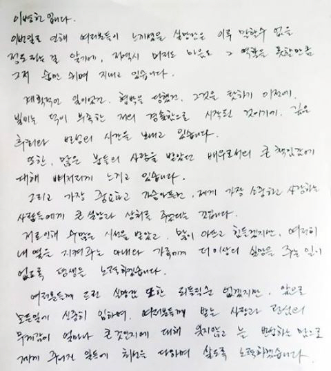 이와 관련해 허지웅은 JTBC '썰전'에 출연해 "아예 조용히 있던 가 아니면 적극적으로 나서던가 해야 하는데 이번 손 편지는 잘못된 대처이자 위기 관리였다"며 "차라리 이런 손편지를 공개하기보다 조용히 검찰 조사를 기다리는 게 현명한 판단이 아니었을까 생각한다"고 자신의 생각을 전했다.