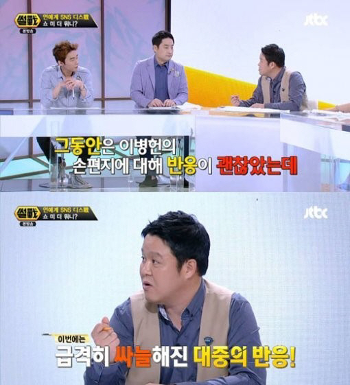허지웅 이병헌 손편지 언급, 비난 수위 높은데", "'썰전'