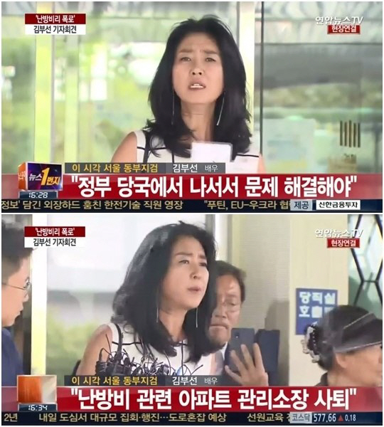 한편 김부선은 지난 14일 서울 성동구의 아파트 내 반상회 도중 주민 A씨를 폭행한 혐의로 고소 당했다. 하지만 김부선은 이와 관련해 오히려 폭행을 당했다고 주장했고, 아파트 난방비와 관련된 문제점을 지적해 이목이 집중됐다.