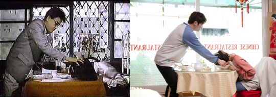 가장 눈에 띄는 같은 점은 역시 '짜장면'신과 '음이탈'신이다. 90년작 '사랑 신부'에서도 짜장면 신과 음이탈 신은 최고의 화제였다. 원작에서 미영(고 최진실)이 회사의 상사를 만난 후 눈물을 흘리는 모습을 본 영민(박중훈)은 질투에 눈이 멀어 함께 식사를 하던 도중 미영의 얼굴을 짜장면에 처박아 버린다. 새로운 '사랑 신부'에서도 영민(조정석)은 미영(신민아)의 후배를 우연히 만난 후 질투에 똑같은 행동을 선보인다.