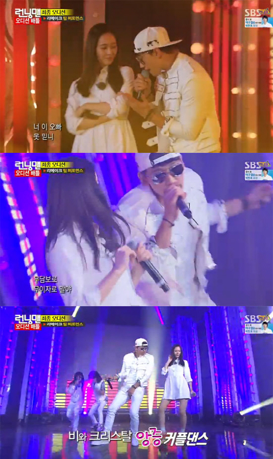 28일 방송된 SBS '일요일이 좋다-런닝맨'에서는 SBS 수목드라마 '내겐 너무 사랑스러운 그녀'의 주연배우 비, 크리스탈, 박영구, 알렉스, 김기방이 출연한 'R팝스타' 편이 그려졌다.