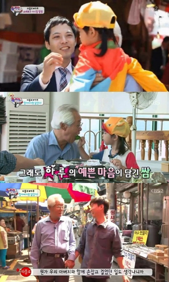 타블로는 하루를 데리고 소래포구 어시장에서 장인어른을 만났다. 특히 공개된 하루 외할아버지와 외삼촌은 진한 인상과 훈훈한 외모를 자랑하며 하루 엄마인 강혜정과 붕어빵 외모로 눈길을 끌었다.
