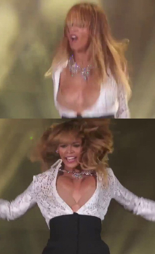 비욘세 공연 중 가슴 노출 '격렬하게 흔드는 가슴'