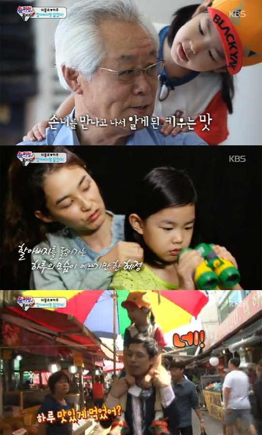 타블로는 하루를 데리고 소래포구 어시장에서 장인어른을 만났다. 특히 공개된 하루 외할아버지와 외삼촌은 진한 인상과 훈훈한 외모를 자랑하며 하루 엄마인 강혜정의 우월한 유전자를 입증했다.