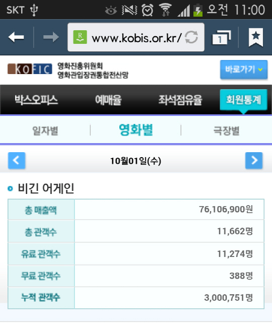 영화 '비긴 어게인'이 지난 8월 13일 개봉 이후 50일째인 1일 오전 11시를 기준으로 300만 명 관객을 돌파했다.