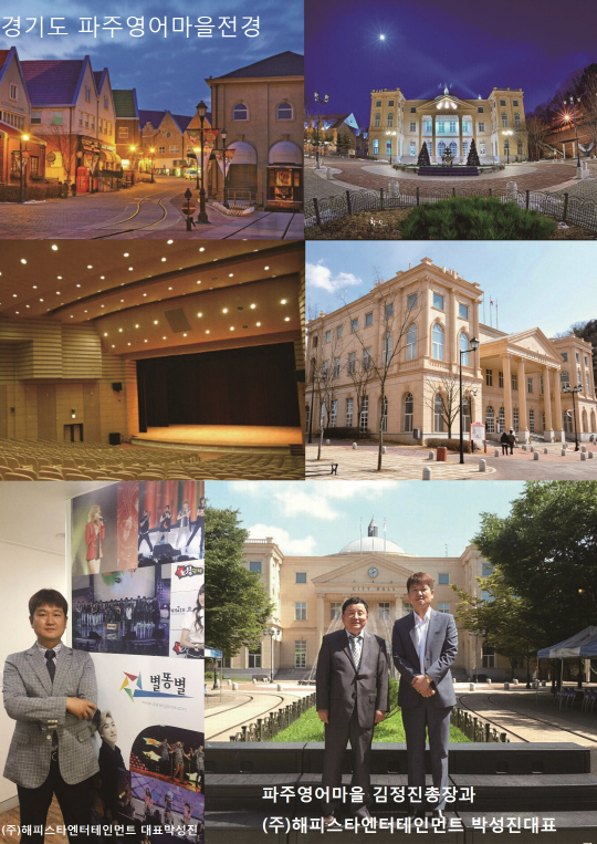이에 최대 최초 글로벌 K 센터가 11월 초 오픈을 위한 준비에 한창이다. 수 많은 스타들의 재능기부를 기반으로 대형 콘서트 등을 진행해 온 별똥별 스타도네이션과 해피스타 엔터테인먼트(대표 박성진 대표)는 "경기도 재단법인 경기영어마을 파주캠프(총장 김정진)와 전략적 협력을 다지는 MOU에 이어 본 계약을 체결 하고 경기영어마을에 글로벌 K 센터를 건립한다"고 발표했다.