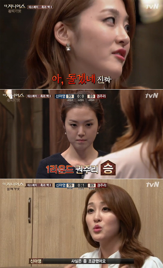 더 지니어스3 신아영 vs 권주리, 두 미녀 '숨막히는 데스매치' 첫 탈락자는?