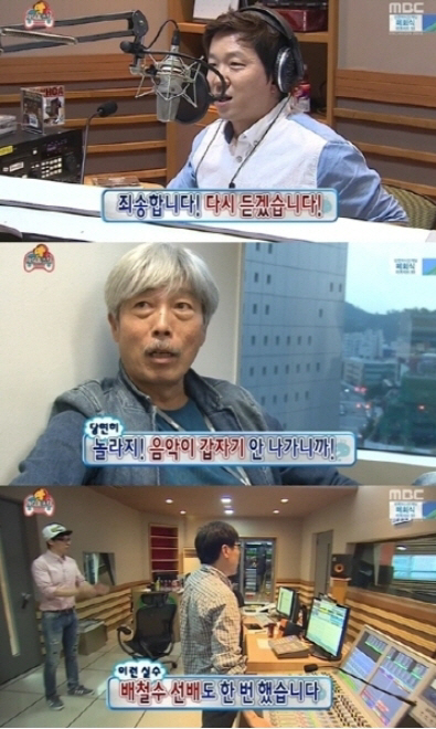 그러자 이를 듣고 있던 배철수는 "시청자들이 놀랄 거야. 음악이 나가다가 뚝 끊기니까. 하지만 나도 몇 번 저런 적 있어"라고 말했고, 스태프들 역시 "괜찮다. 배철수 씨도 예전에 똑같은 실수를 한 적이 있다. 기죽지 마라"고 격려했다.