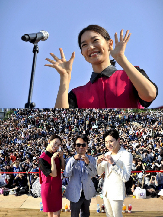 공개된 사진 속에는 해운대 비프빌리지에서 열린 '나의 사랑 나의 신부' 야외무대 인사에 참석한 조성석과 신민아의 모습이 담겨있다.