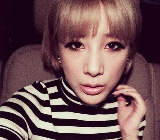 공개된 사진 속에서 서인영은 스트라이프 티셔츠를 입고 짙은 아이메이크업과 단발 블론드 헤어를 한 채 카메라를 응시하고 있다.