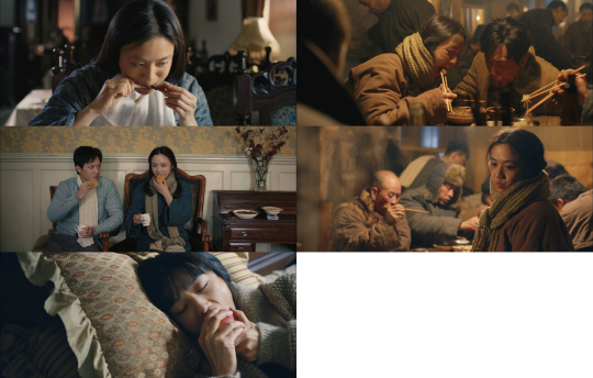 스틸에는 탕웨이가 먹음직스럽게 고기를 뜯는 장면, 샤오쥔과 함께 다과를 즐기는 장면, 시장에서 샤오쥔과 함께 외식을 하는 장면 등 보는 사람의 식욕까지도 돋울 정도로 먹는 장면을 먹음직스럽게 표현해냈다. 시장에서 뜨거운 김이 나는 완자탕을 바라보며 못내 아쉬운 듯한 표정을 짓는 장면이나 샤오쥔에게 과자를 쥐어주며 먹게 하는 장면 등에서는 식탐이 엿보일 정도로 먹는 것에서까지 열정적인 모습이 드러난다. 심지어 자면서까지 사과를 베어 먹는 모습은 아이 같은 귀여운 매력을 발산하며 보는 사람을 미소 짓게 한다.