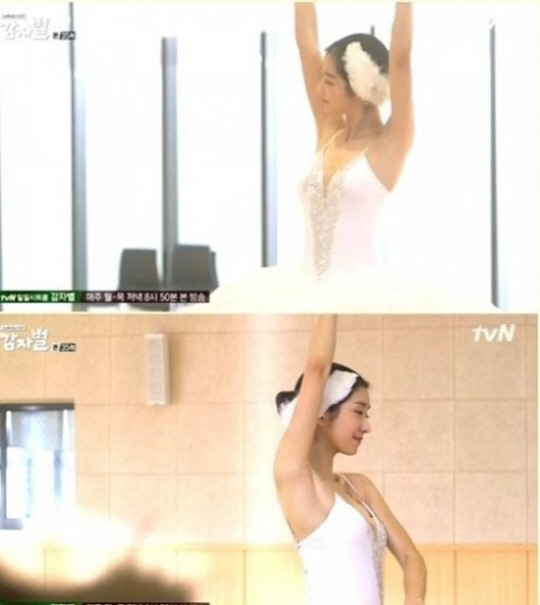 특히 극중 발레리나로 변신, 우아한 동작을 선보인 서예지는 가슴이 깊게 파인 발레복을 입고 늘씬한 몸매를 뽐내 탄성을 자아내게 했다.