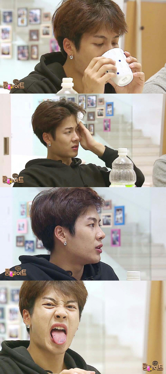 SBS '룸메이트'에서 잭슨이 매운 낚지볶음을 먹고 힘들어하는 모습이 포착돼 눈길을 끌고 있다.