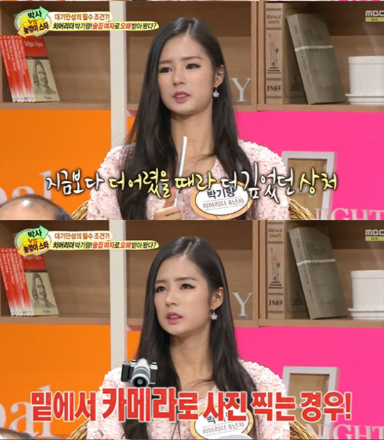 11일 방송된 MBC '세상을 바꾸는 퀴즈-세바퀴'에서는 치어리더 박기량이 출연해 무명시절 서러웠던 일화를 이야기 했다.