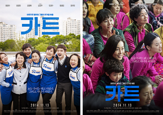 '카트'는 대형 마트의 비정규직 직원들이 부당해고를 당한 이후 이에 맞서면서 벌어지는 이야기를 그린 작품. 이번에 공개된 메인 포스터는 총 2종으로, 각기 다른 분위기로 캐릭터들의 모습을 담고 있어 더욱 시선을 집중시킨다.
