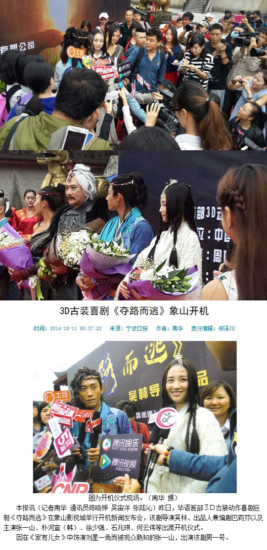 박하선이 주연을 맡은 100억 규모 3D 중국 영화 '탈로이도(奪路而逃·길을 찾아 도망가다)'의 제작발표회가 10일 중국 닝보에서 열렸다.