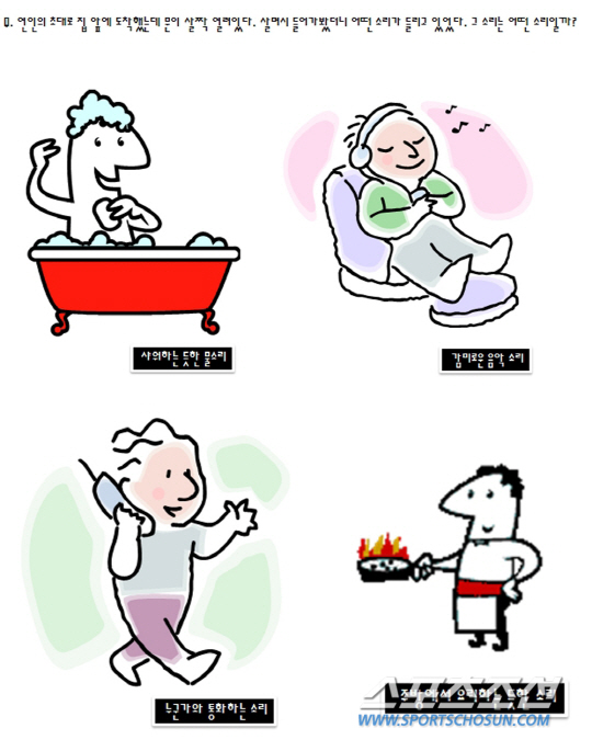 D. 요리 소리 - 당신은 이기적인 스킨십에 실망하게 된답니다. 당신의 기분과는 상관없이 자기 감정대로만 스킨십을 한다면 설레던 마음까지도 사라져 버릴 수 있습니다. 말하지 않아도 먼저 당신의 컨디션이나 기분을 알아줬으면 하는 당신! 하지만 말하지 않는다면 당신의 마음을 알지 못한답니다.
