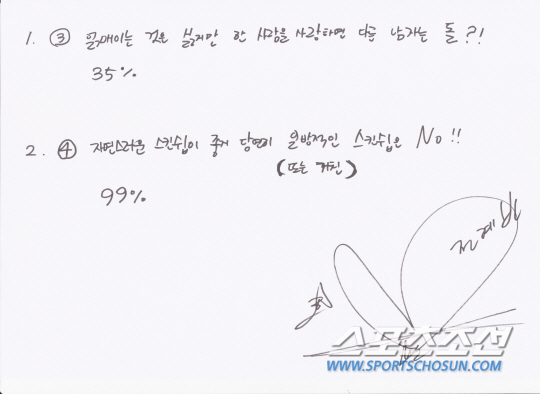 먼저 바람기 의혹에 대해서는 강한 부정을 했다. '쿨녀'답게 얽매이는 연애는 싫어하지만 한 사람을 사랑하면 다른 사람은 쳐다보지도 않는다는 설명. 적중률 20%와 50% 사이에서 고개를 갸웃거리며 고민하다 35%라는 절충안을 내놨다. 스킨십 질문에는 99% 공감을 드러냈다. 연인 사이에 자연스러운 스킨십을 선호하는 편으로, 일방적이거나 거친 스킨십은 좋아하지 않는다는 설명이다.