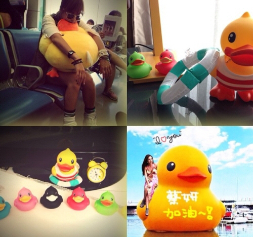 공개된 사진 속에는 오리 인형을 안고 있는 채연의 모습과 다양한 형태의 러버덕 사진이 포함됐다.