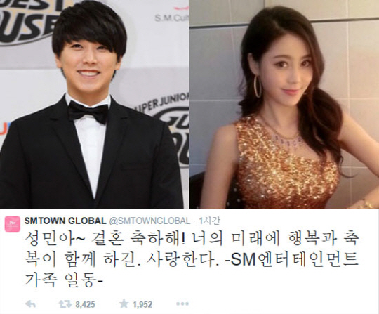 슈퍼주니어 성민 김사은 결혼에 SM "행복과 축복 함께 하길" 감동 축하메시지