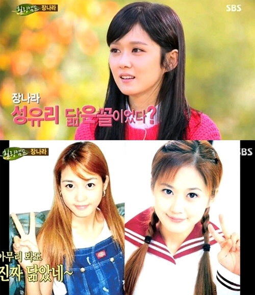 이날 MC들은 "장나라씨와 성유리씨가 많이 닮았다"고 말했고, 장나라는 "데뷔 때 그런 말을 들었었다"고 밝혔다.