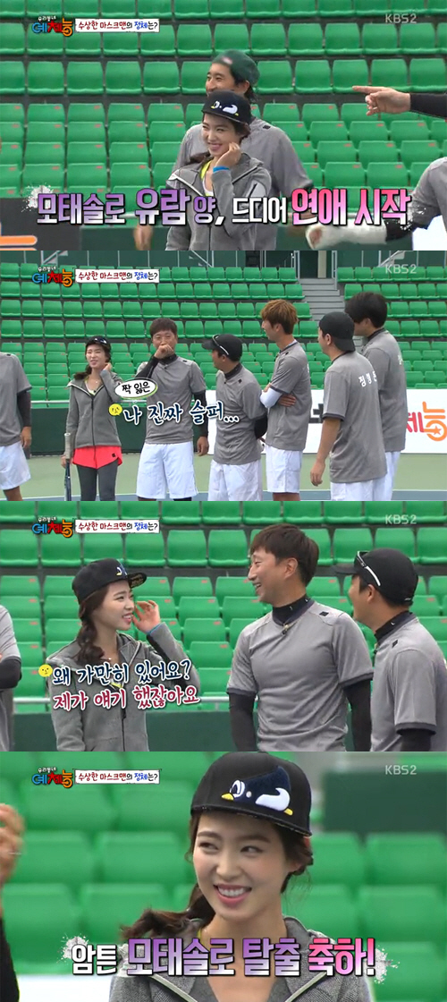14일 오후 방송된 KBS 2TV '우리동네 예체능'에서 멤버들은 최근 모태솔로를 탈출한 홍일점 차유람의 열애를 축하했다.