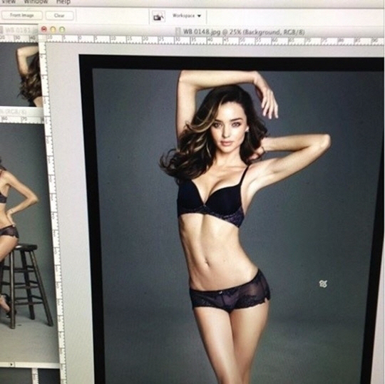 공개된 사진 속에는 검은색 속옷만 입은 채 란제리 화보 촬영을 진행하고 있는 미란다 커의 모습이 담겨있다.