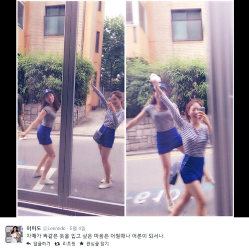 이미도는 지난 6월 자신의 트위터 계정을 통해 "자매가 똑같은 옷을 입고 싶은 마음은 어릴때나 어른이 되서나"라는 글과 함께 두 장의 사진을 게재했다.
