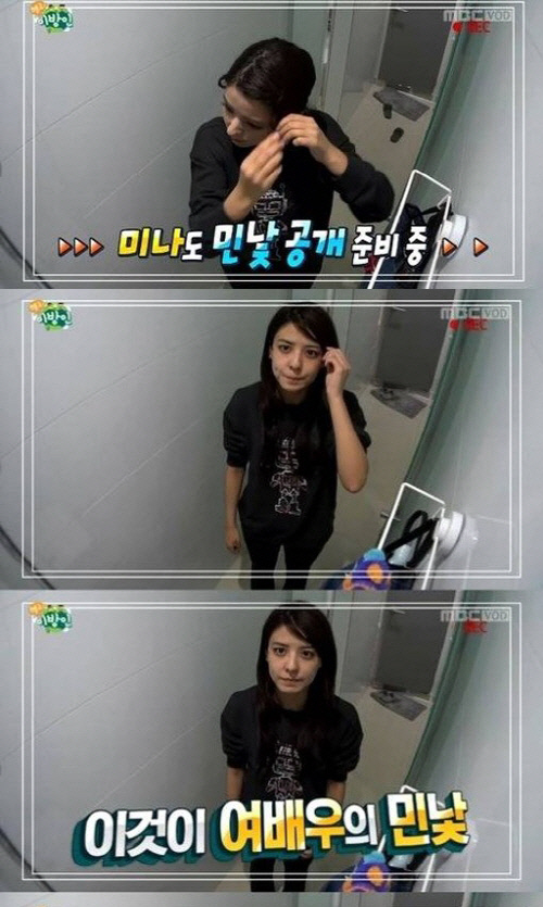 이날 후지이 미나는 취침 전 화장을 지우고 세안을 하며 민낯을 공개해 이목을 집중시켰다.