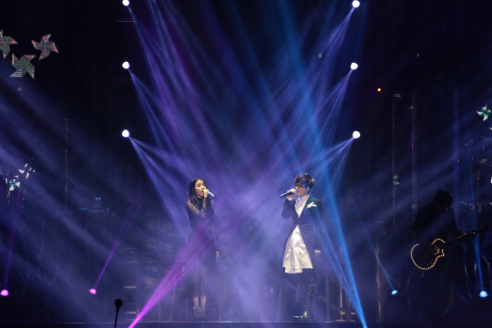 이날 공연은 잔잔한 피아노 반주의 '모아이'로 시작됐다. 이어 9집 선공개곡 '소격동'을 부른 아이유가 깜짝 게스트로 무대에 올라 서태지와 환상의 하모니를 선보이며 분위기를 끌어올렸다. 탄력을 받은 서태지는 9집 타이틀곡 '트리스말로윈'으로 객석을 들썩이게 만들었고, '버뮤다 트라이앵글'까지 열창한 이후에야 관객들과 첫 인사를 나눴다.