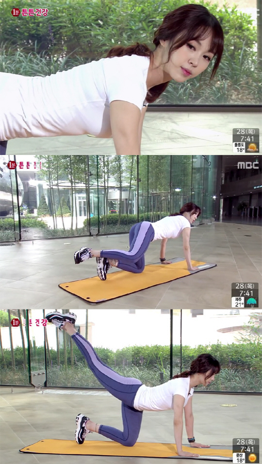 '1분 튼튼건강' 20일 방송분에서 박초롱은 '힙업·고관절 강화 동작'을 다뤘다.