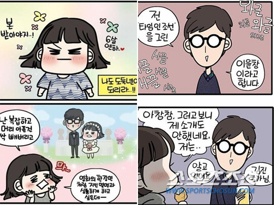 또한 김진은 과거 연재한 '아랫집 시누이'에 등장하는 상상신에서 6세 연하와의 결혼을 꿈꾸며 신랑의 모습을 이윤창과 비슷한 안경 쓴 키 큰 남자 캐릭터로 그린 바 있어 많은 팬들의 궁금증을 유발하고 있다.