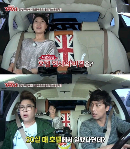 이날 황영희는 "배우가 되기 전에 남산에 위치한 한 호텔에서 호텔리어로 근무했었다. 정식 직원이었다"고 고백했다.