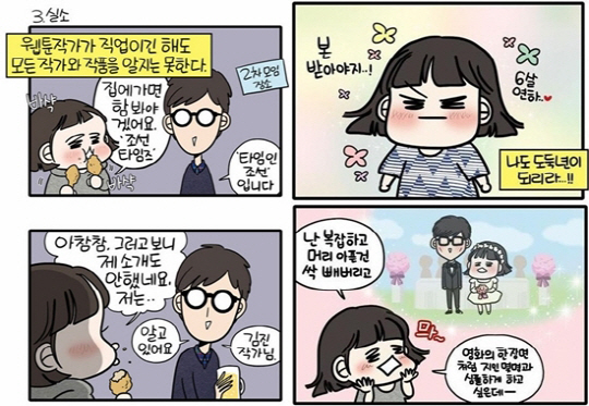 웹툰작가 김진 이윤창, 핑크빛 썸타는 중?...웹툰 속 열애 증거 포착