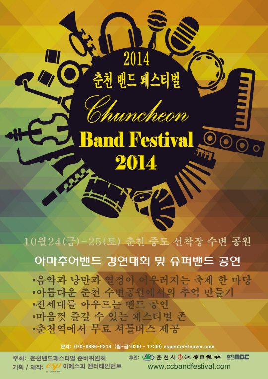 '춘천 밴드 페스티벌 2014'는 프로와 아마 밴드를 망라한 전 세대 밴드가 한자리에 모이는 대한민국 밴드 축제다. 슈퍼 밴드의 콘서트는 물론 직장인, 대학생 동아리 등 아마추어 밴드 경연대회 성격을 겸하고 있다. 1차 예선을 거쳐 본선에 진출할 아마추어 밴드 중 대상 1팀에는 500만원의 상금이 수여된다. 손홍섭 한상원 정원영 손성제 등이 심사위원으로 나선다.