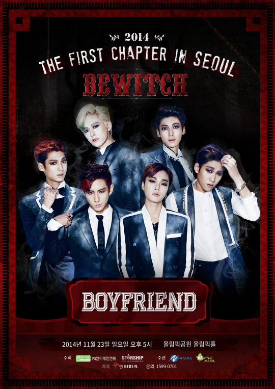 세 번째 미니앨범 'WITCH(위치)'로 컴백한 보이프렌드는 국내 첫 단독 콘서트 '2014 Boyfriend, the first chapter in Seoul "Bewitch"' 를 오는 11월 23일 서울 올림픽공원 올림픽홀에서 개최한다. 그 동안 보이프렌드는 일본, 대만, 중국, 태국, 미국, 푸에르토 리코 등 수많은 해외 단독 공연을 성공적으로 끝내며, 국내 콘서트에 대한 기대를 극대화 시켜왔다.
