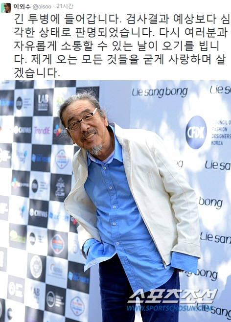 이외수는 자신의 트위터에 "긴 투병에 들어갑니다. 검사결과 예상보다 심각한 상태로 판명됐습니다"라고 말문을 열었다.