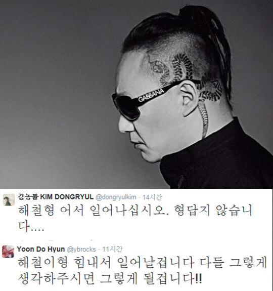 23일 윤도현은 자신의 트위터에 "해철이형 힘내서 일어날 겁니다. 다들 그렇게 생각해 주시면 그렇게 될 겁니다"라는 글을 게재했다. 김동률 역시 "해철형 어서 일어나십시오. 형답지 않습니다"라는 말을 전하며 신해철의 쾌유를 빌었다. 이 밖에도 가수 윤종신, 윤일상 등이 SNS를 통해 응원의 메시지를 전했다.