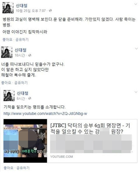 마왕 신해철 별세, 신대철 병원 겨냥한 글인가", "마왕 신해철 별세, 그를 애도한다" 등의 반응을 보였다. <스포츠조선닷컴>