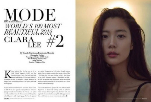 '2014 세계에서 가장 아름다운 여성 100인'에서 클라라는 미국 배우 겸 모델 타니아 마리 커린지(tania marie caringi)를 이어 2위를 차지하는 기염을 토했다.