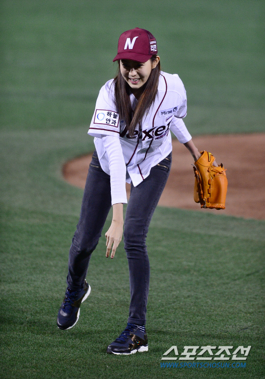 넥센 김성갑 2군 감독의 딸인 유이는 이날 넥센 유니폼 상의에 스키니 진을 입고 마운드에 올라 관중들의 시선을 사로잡았다.