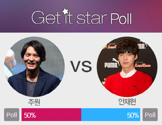 스타 스타일 매거진 어플리케이션 '겟잇스타'의 123번째 'Get it Star POLL'은 '내가 패션왕!' 주원 vs 안재현의 맞대결입니다.